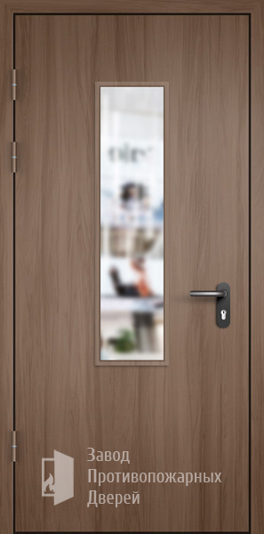 Модель Противопожарная Однопольная дверь МДФ с прямоугольным стеклом ДПМ-01-EIW60