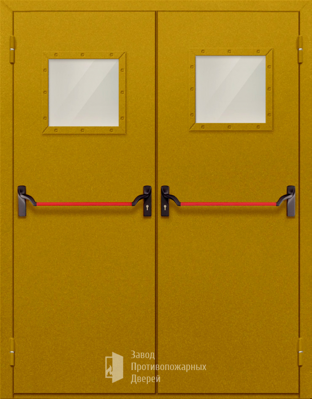 Противопожарная Двупольная дверь с квадратным стеклом ДПМ-02-EIW60 с антипаникой |