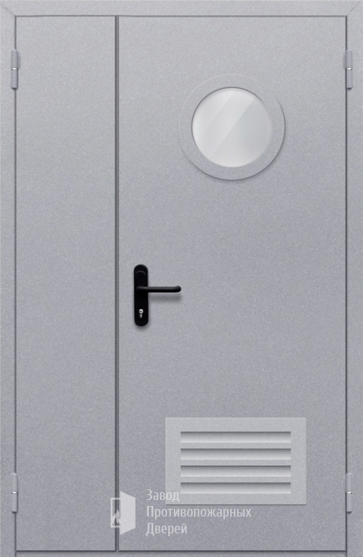 Противопожарная Полуторная дверь с круглым стеклом ДПМ-02-EIW60 с решеткой |